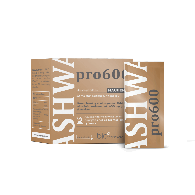 Ashwa pro 600 - uni, närvisüsteem, stress 28 pakki Biofarmacija toidulisand