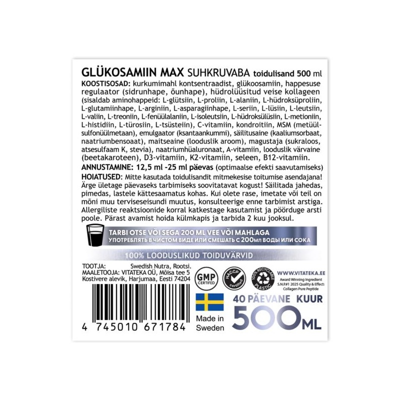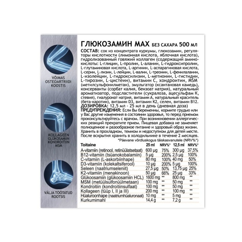 - Sisaldab glükoosamiini, kollageeni ja MSM-i
