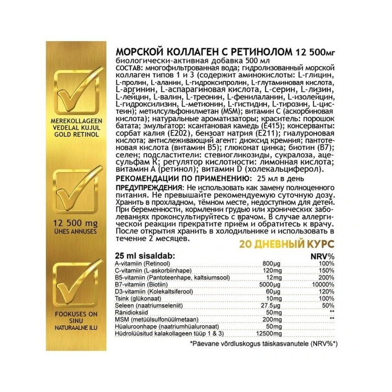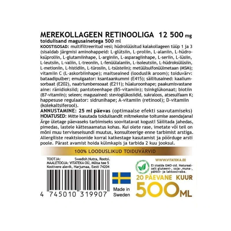 - Merekollageen (hüdrolüüsitud) – 12 500 mg