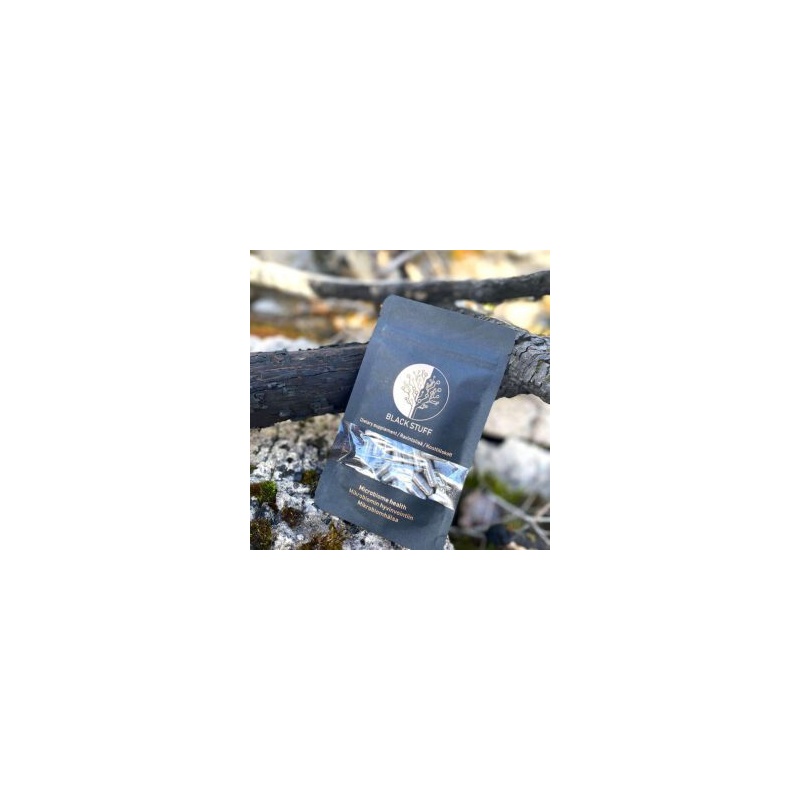 Black Stuff ühendab endas loodusliku päritoluga bioaktiivsete ühendite täisspektrit – sealhulgas fulvohappeid, ligniini ja polüfenoole –, mis on saadud männikoorest ning mustast pässikust. Need ühendid on seedimise seisukohast olulise mikrobioomi elutegevuse üks osa: terviklik mikroobide ökosüsteem mõjutab meie enesetunnet mitmel moel alates kõhust kuni mõtlemiseni.