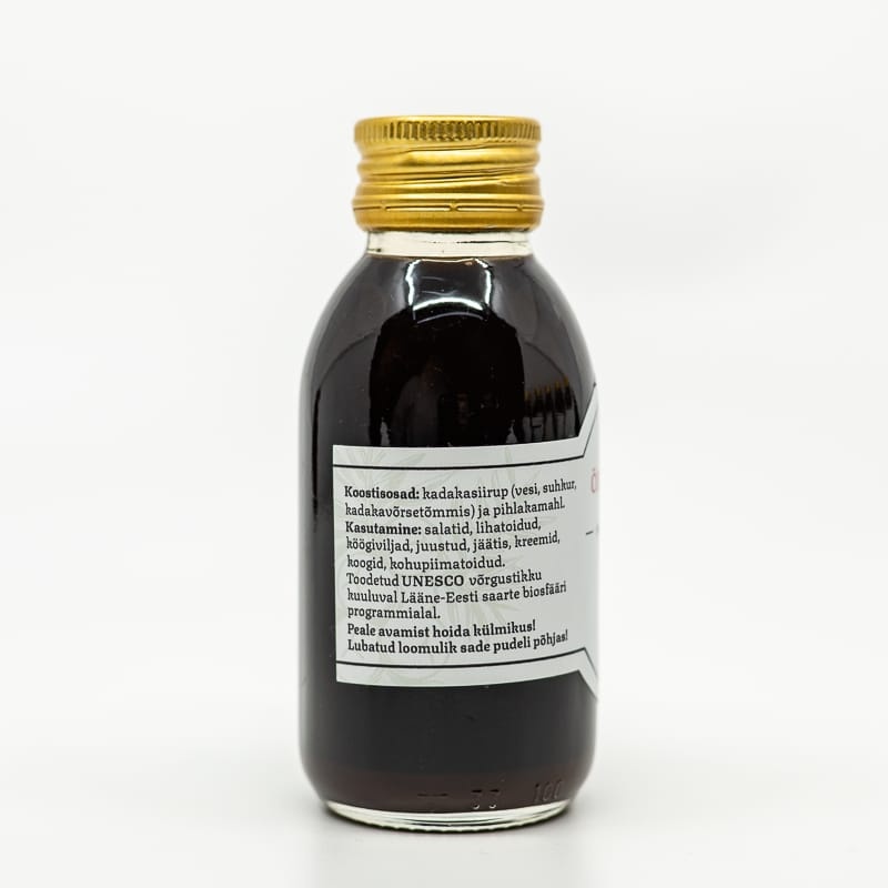 Saaremaa kadakavõrsetest ja vahtramahlast kokku keedetud siirupile annab erilise karamellise maitse kvaliteetne demerara suhkur.