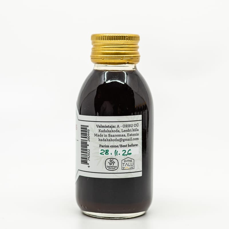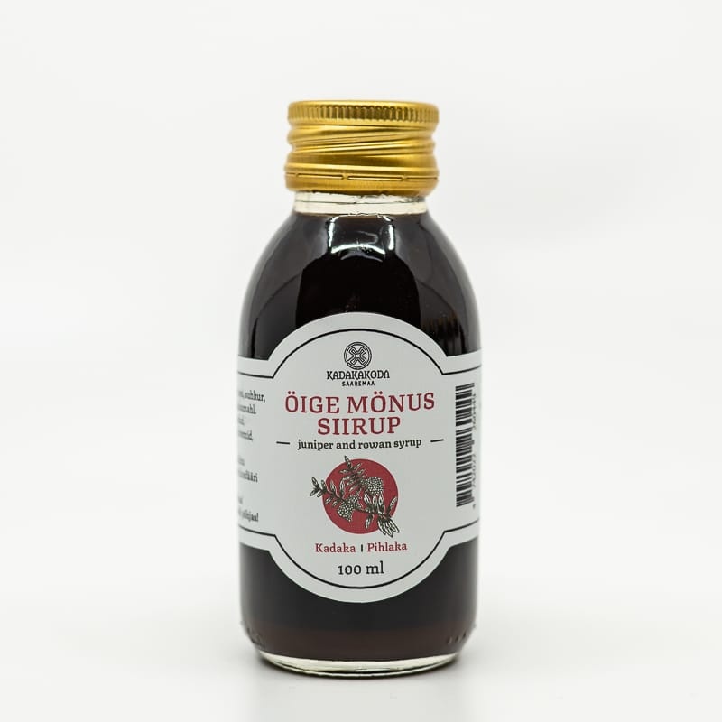 Koostisosad: kadakasiirup (vesi, suhkur, kadakavõrsetõmmis) ja pihlakamahl